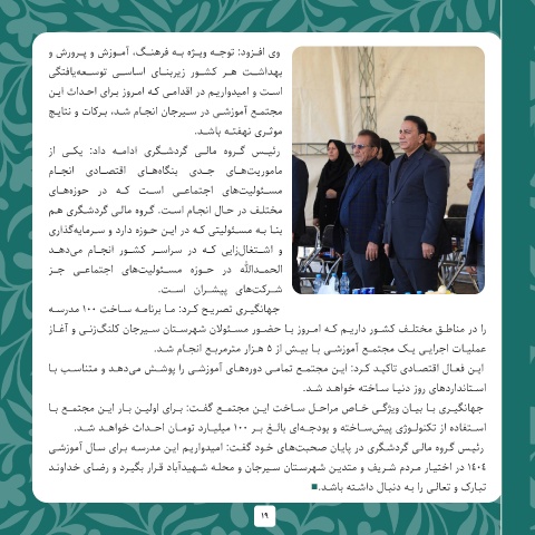 مجتمـع آموزشـی در سـیرجان انجـام شـد ،بـرکات و نتایـج